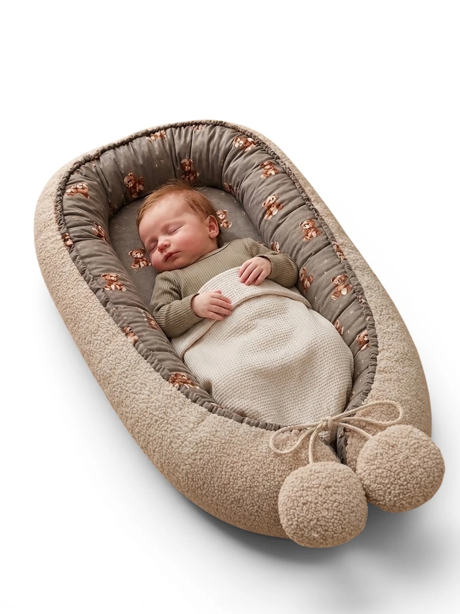 Kokon niemowlęcy gniazdo dla dziecka niemowlaka baranek i misio