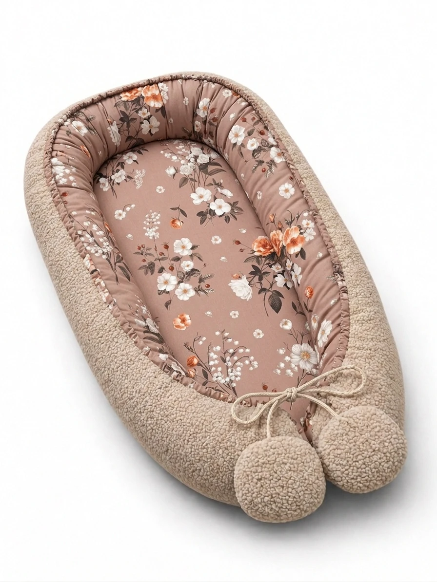 Kokon wyposażony jest w regulowany sznurek, który pozwala dopasować jego wielkość do potrzeb rosnącego dziecka. Dzięki temu produkt „rośnie” razem z maluchem i może być używany przez dłuższy czas. Grube, stabilne boczki chronią niemowlę przed przypadkowym przetoczeniem się czy wypadnięciem, zapewniając spokojny sen i komfortowy odpoczynek.