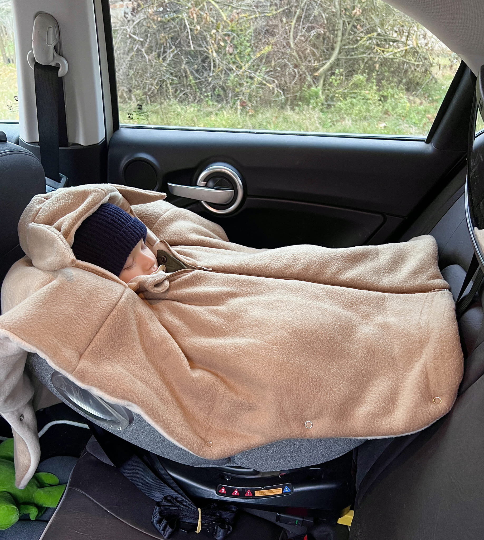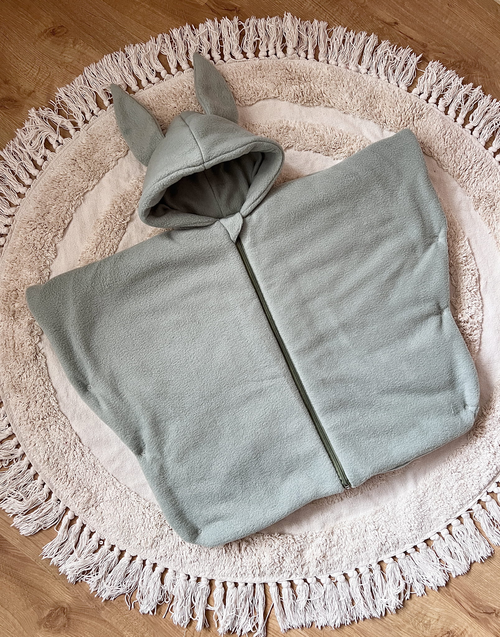 Ponczo samochodowe do fotelika dla dziecka otulacz szałwia 1-3 LATA